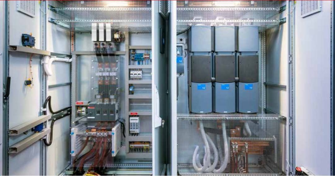 1941年起,Buma泵站與位于東側(cè)的Smeenge泵一起為荷蘭東北部圩田的排水發(fā)揮著重要的作用。時至今日,Buma泵站依舊是圩田水位管理的重要組成部分。該泵站配備三臺大型垂直離心泵,每臺泵的最大流速為750立方米/分鐘,泵頭為5.6米。每臺泵由850kW的三相感應(yīng)電機驅(qū)動。當(dāng)前的泵和690V變速電機由西班牙制造商Alconza出品,自2006年開啟使用。隨著時間的推移,變頻器的故障逐漸增多,甚至出現(xiàn)備件難以獲得的情況。為了確保泵的持續(xù)可用性,2018年去水務(wù)局決定對現(xiàn)有的變頻器進行更換。