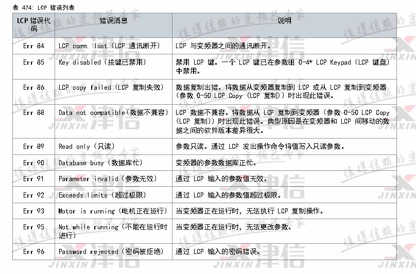 Err 84,Err 85,Err 86,Err 88,Err 89,Err 90,Err 91,Err 92,Err 93,Err 95,Err 96,錯誤代碼詳細(xì)信息如下: