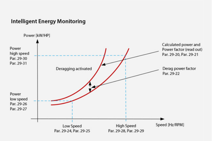 基于工況的凈化在運(yùn)行期間,能耗監(jiān)測(cè)系統(tǒng)會(huì)檢測(cè)泵送作業(yè)的能耗是否超過(guò)預(yù)期。出現(xiàn)此類(lèi)情況時(shí),說(shuō)明泵已經(jīng)開(kāi)始堵塞,需采用凈化來(lái)防止進(jìn)一步堵塞。VLT® AQUA Drive內(nèi)置凈化功能,可啟動(dòng)基于工況的清潔循環(huán),對(duì)泵實(shí)施預(yù)防性維護(hù)。